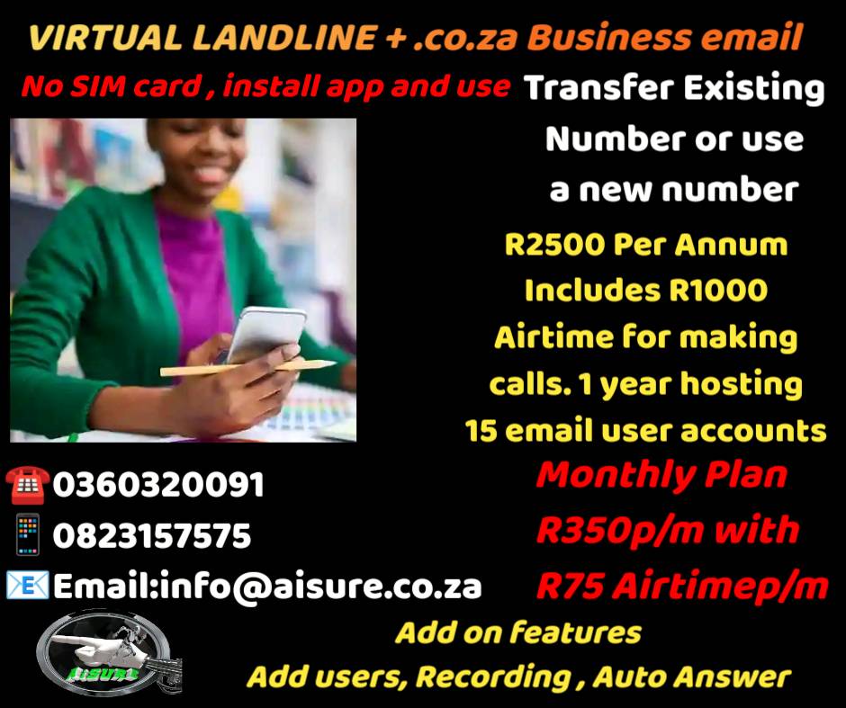 Virtual landlines – Stay connected during load shedding . Free .co.za business email included